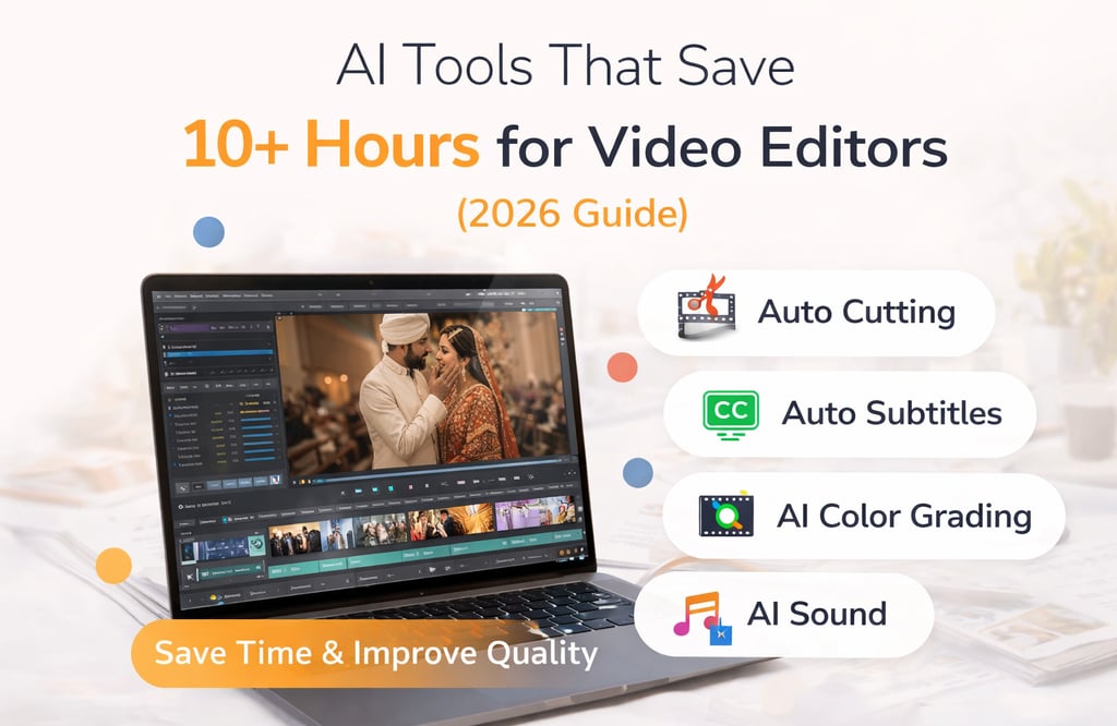 Video editing is one of the most time-consuming parts of content creation. Whether you’re editing wedding films, reels, or YouTube videos, hours are spent cutting clips, adding subtitles, syncing audio, and color grading. But in 2026, AI tools are changing everything. These tools can reduce your editing time by more than 50 percent while improving quality. In this guide, we’ll explore the best AI tools that help video editors save time and work more efficiently.